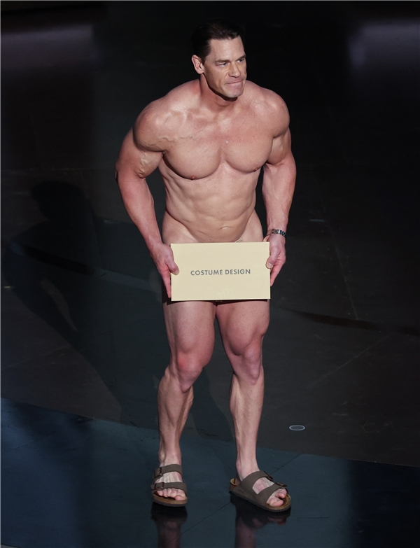 Ünlü oyuncu ve güreşçi John Cena, “En İyi Kostüm” ödülünü sunmak için sahneye çırılçıplak çıktı.